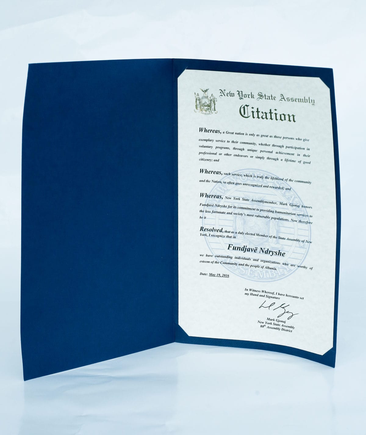 During the opening of “Fundjavë Ndryshe’s” offices in New York, the Assembly of New York considered this organization as an example of civil initiative and of volunteering programs. Based on them it is given a huge help to the people living in misery and poverty.