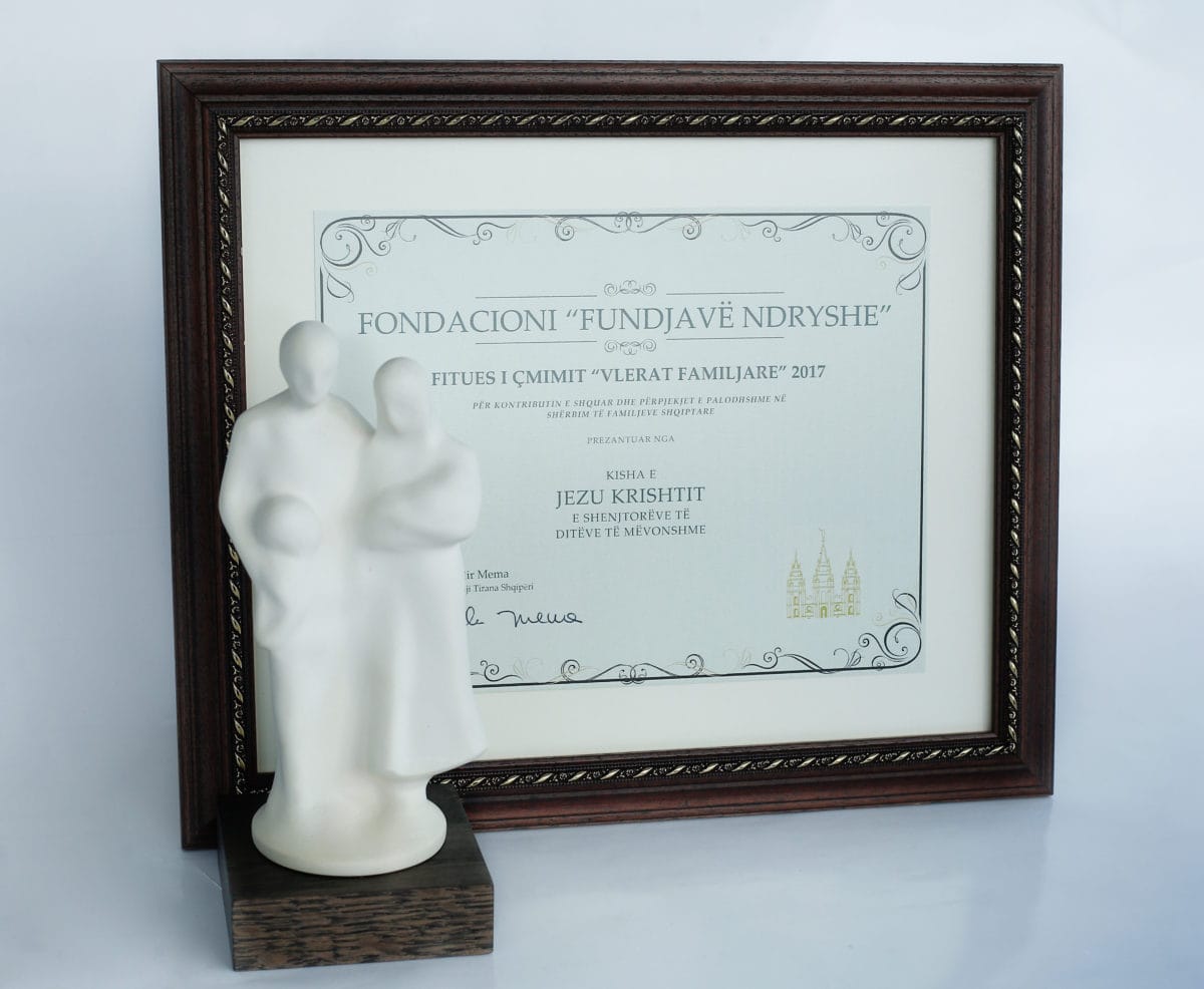 For the contribution and tireless efforts of “Fundjavë Ndryshe” foundation in serving the Albanian families, the Church of Jesus Christ LDS (Mormons) presents to the “Fundjavë Ndryshe” the 2017 price.